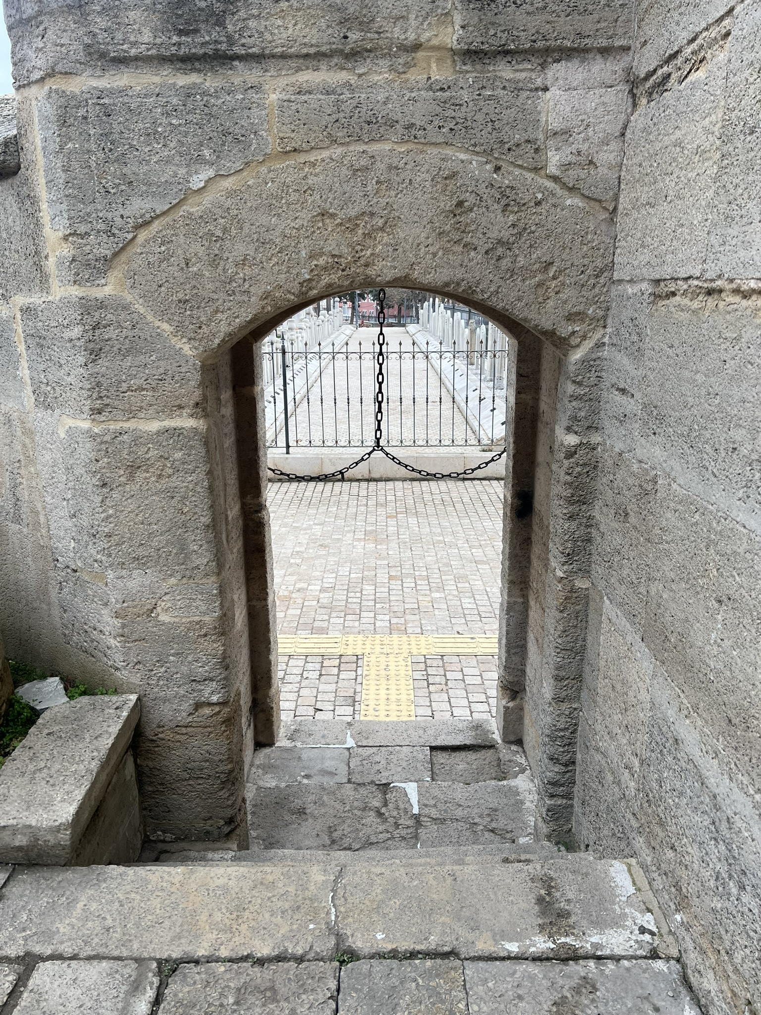 Подошла к башне Правосудия. Башню построил знаменитый архитектор Мимар Синан в 1561 году по распоряжению султана Сулеймана Великолепного. Конструкция башни довольно интересна: она состоит из четырёх этажей, которые венчает острая вершина. На самом верху башни находится мраморный фонтан и небольшой бассейн. В этой башне решались самые важные судебные дела империи. Она стояла целая и ухоженная, но огороженная сеткой за которой виднелась охрана. Дальше виднелся дворец Баязида весь в строительных лесах.