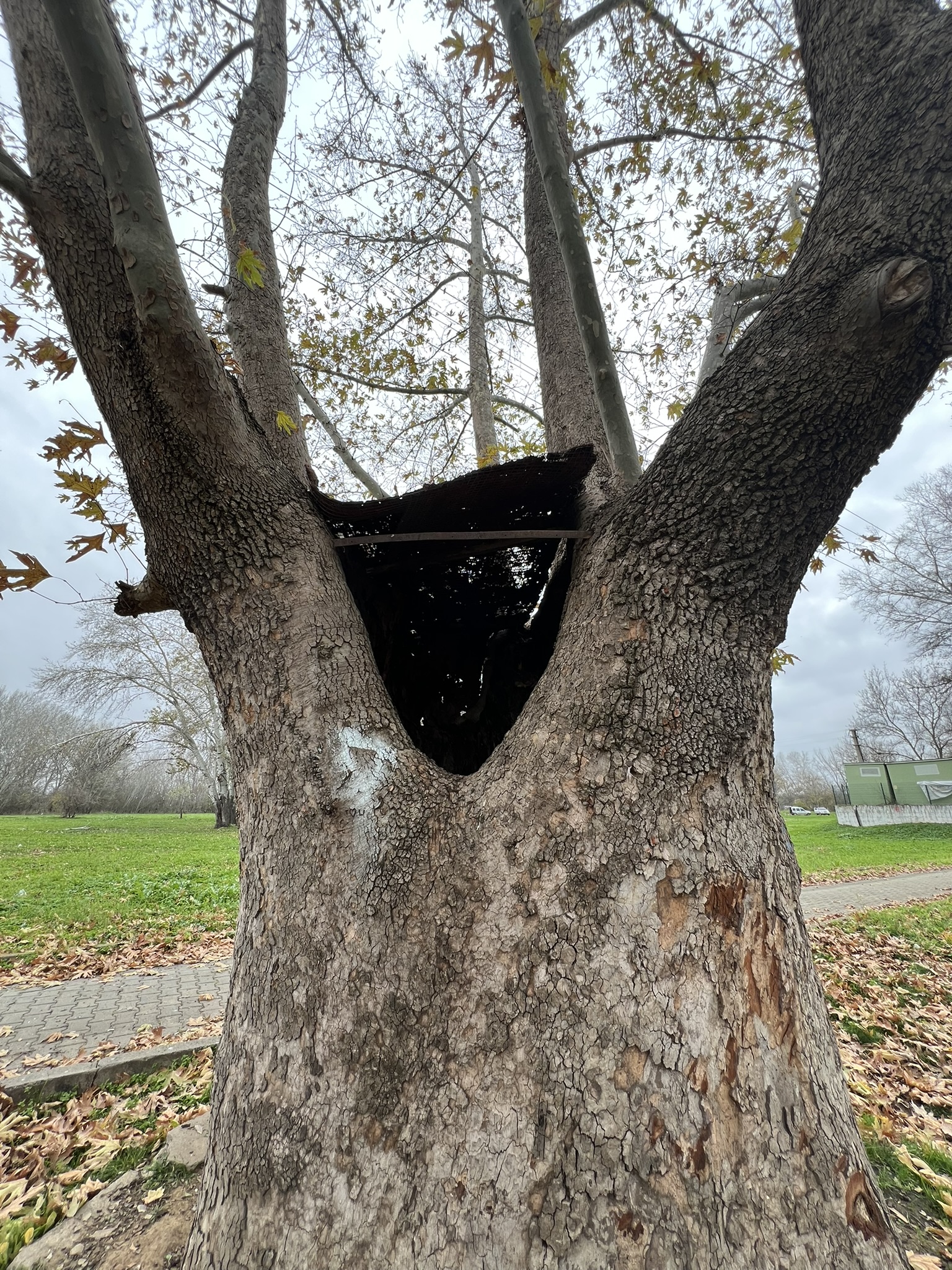 Подошла к двум огромным старым деревьям, около двух метров диаметром.