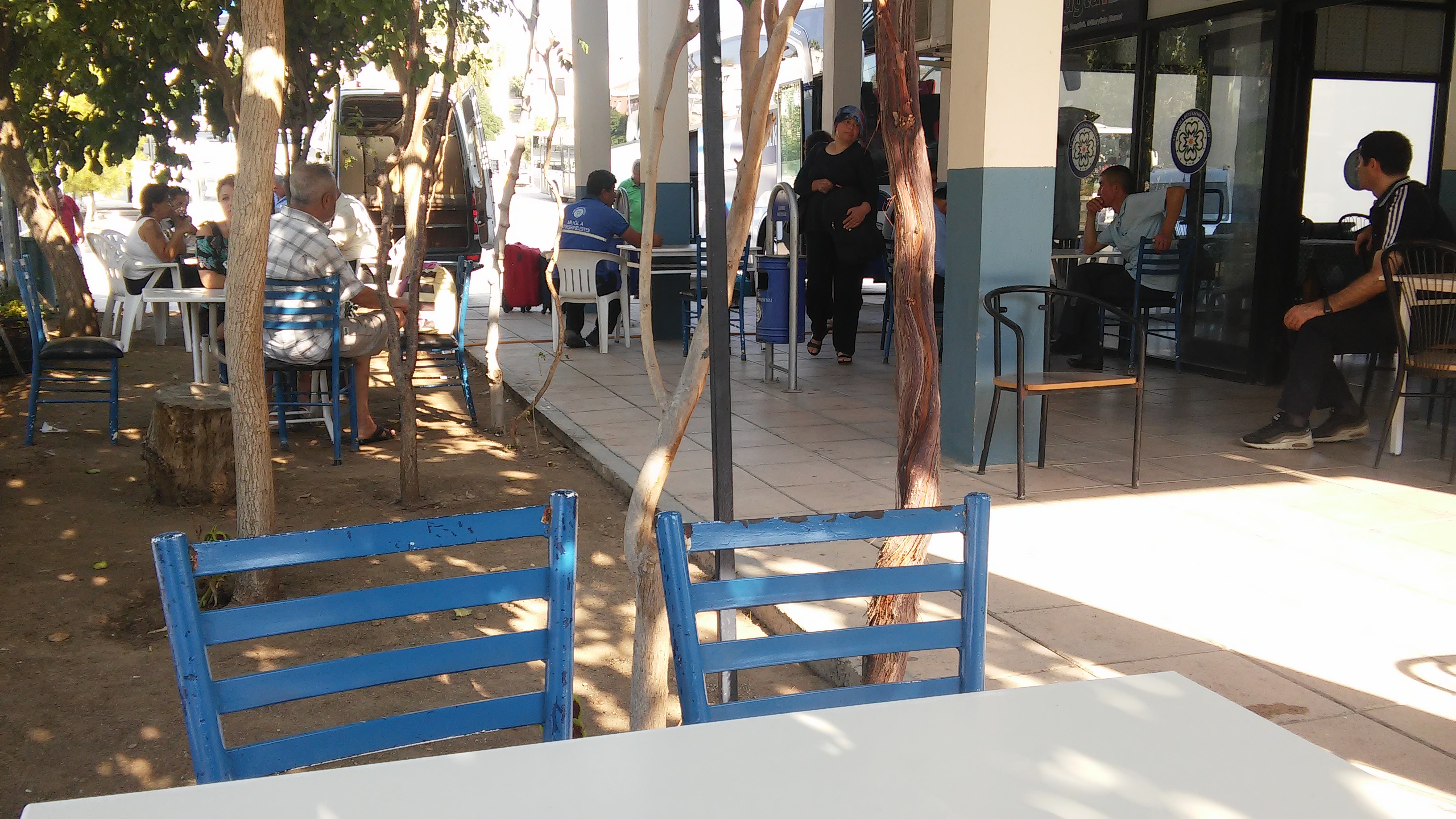 Из Мармариса на маршрутке я доехала до города Датча. Дорога из Мармариса в Датчу идет мимо хвойных лесов, гор, морских бухт. Автобусы в Книдос из Датчи ходят 2 раза в день. Пришлось ожидать полтора часа на отогаре. На обратном пути эта же стыковка заняла 5 мин. Можно было бы походить, посмотреть Датчу. Но в 10 утра солнце грело до 35 градусов в тени. Поэтому сидела в кафе пила чай, как делали водители и пассажиры.  Расстояние из Датчи в Книдос около 30 км. Дорога идет наверх вдоль побережья Эгейского моря между гор с крутыми поворотами. Горы попадались необычные замшевые, светло-коричневые.  Я удивилась, как водитель при такой крутизне все время разговаривал по телефону. У меня закладывало уши, как в самолете. Двум женщинам стало совсем плохо. Автобус заезжал во все маленькие селения на его пути и расстояние 30 километров преодолел за полтора часа.
