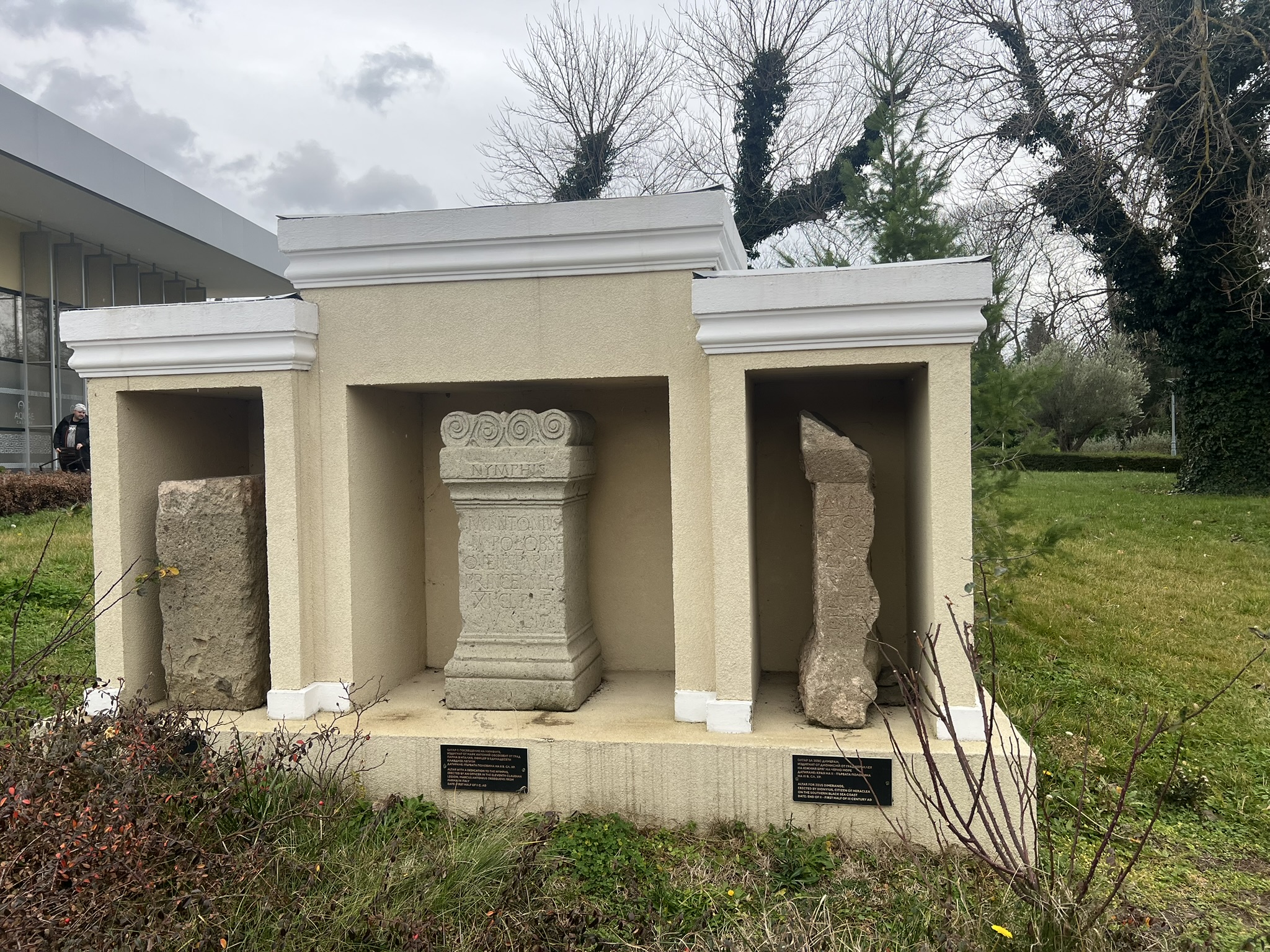 Перед музеем нас встречает нимфериум - столб с надписями.