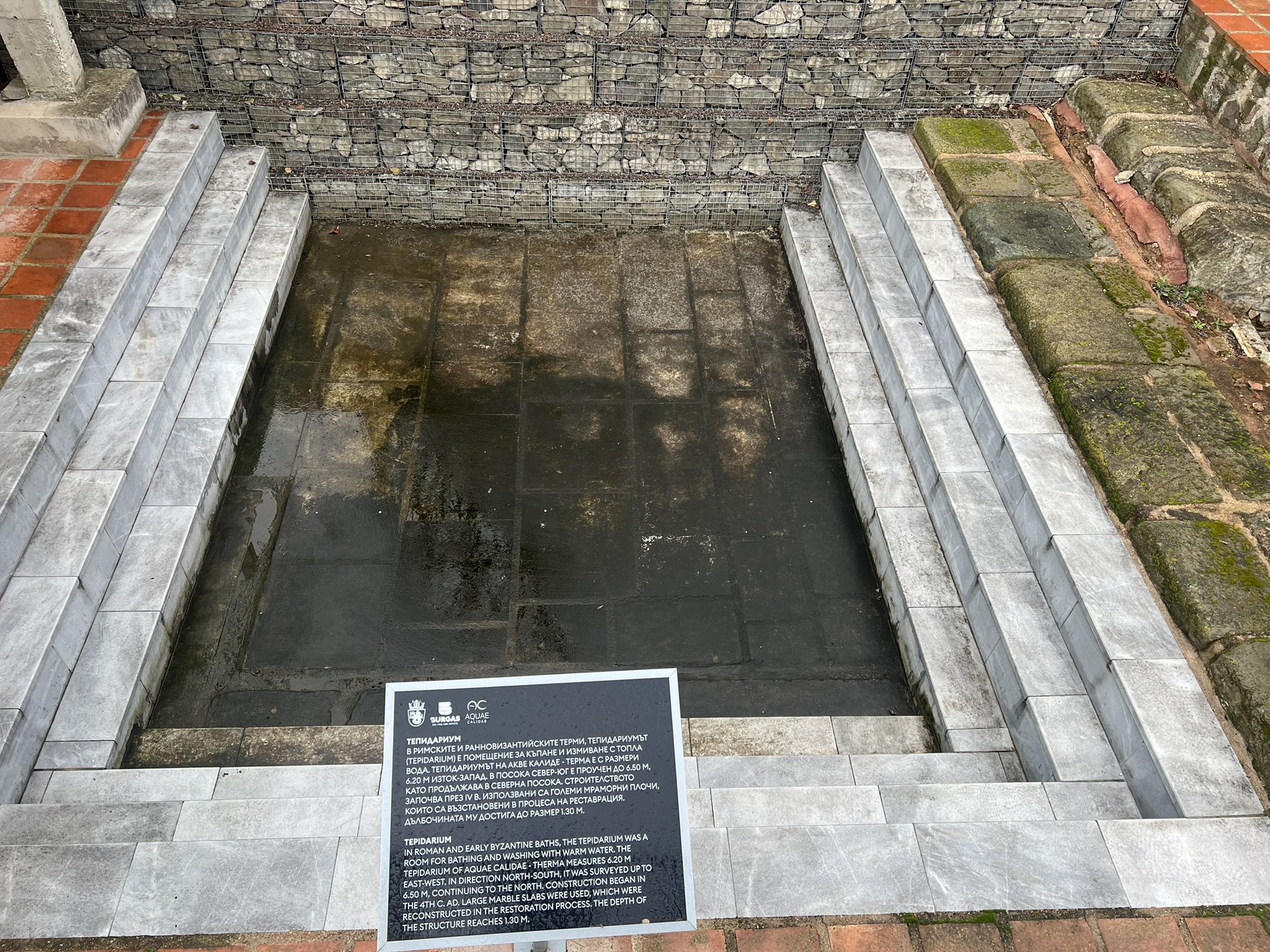 Здесь были большие бассейны для плавания. При раскопках обнаружили два бассейна и два аподитерия.